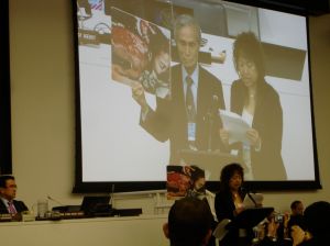 The real drama came on the last day of the conference, when the plenary session to approve the final document was postponed twice until late afternoon. The Iranian delegation, as we learned, had instructions from Tehran to block consensus on the outcome, ostensibly because Iran was dissatisfied with the language about the Middle East resolution and because the disarmament recommendations were not strong enough. Several hours of intense negotiations behind closed doors were required to persuade Iran that another failed NPT Review was in no one’s interest. In the end, Iran joined the consensus and the 28-page final report (available at Reaching Critical Will) was adopted.
