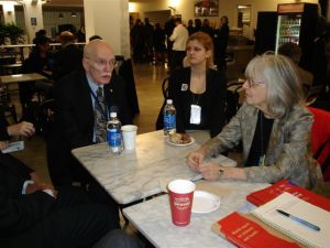 IPPNW's Dr. Cathey Falvo (right) and PSR's Elina van Schaik meet Ambassador Mahley and other members of the US delegation.
