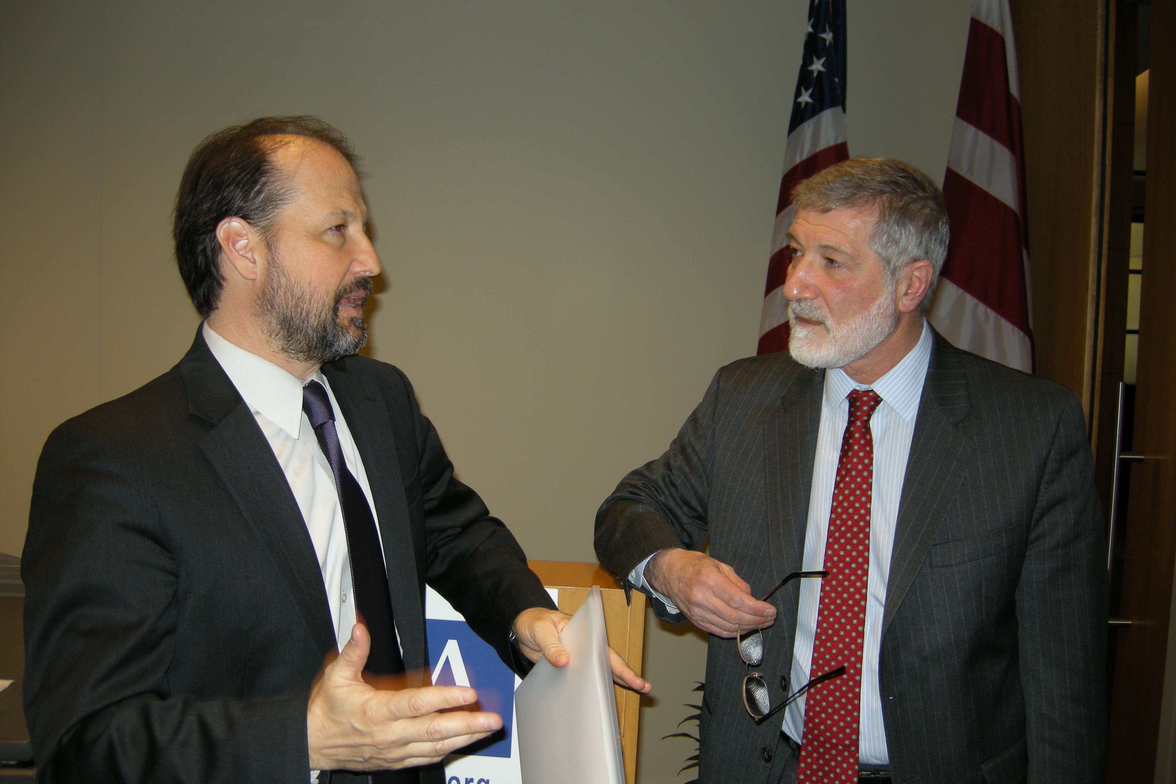 Ira Helfand (right) and Arms Control Association executive director Daryl Kimball, who moderated the panel discussion.