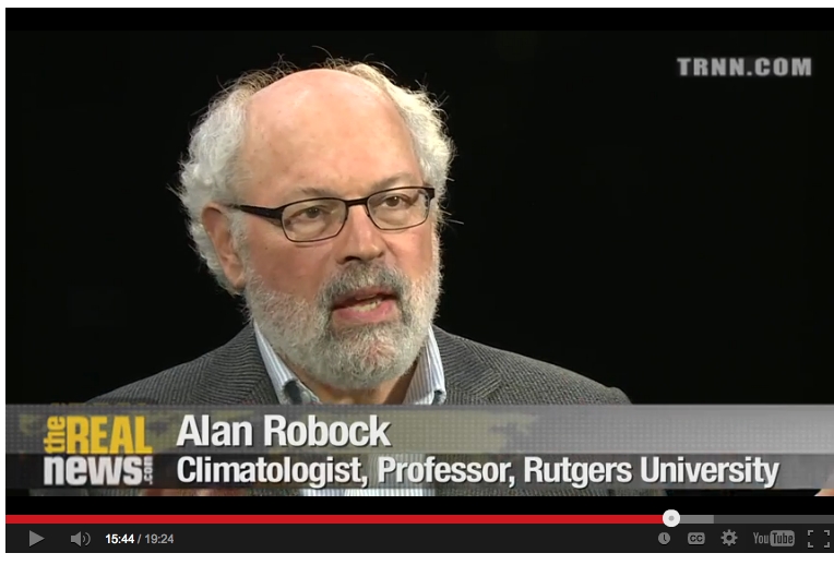 Alan Robock, professor of meteorology at Rutgers University and a science adviser to IPPNW on the climate effects of nuclear war, was interviewed yesterday (May 5) on the The Real News. In a segment called “Reality assert itself,” Prof. Robock told editor Paul Jay that “both [presidents] Reagan and Gorbachev learned about the nuclear winter results from scientists–and I have quotes of both of them saying that helped them decide to change the arms race. And it made people focus on these horrible direct effects of nuclear weapons.