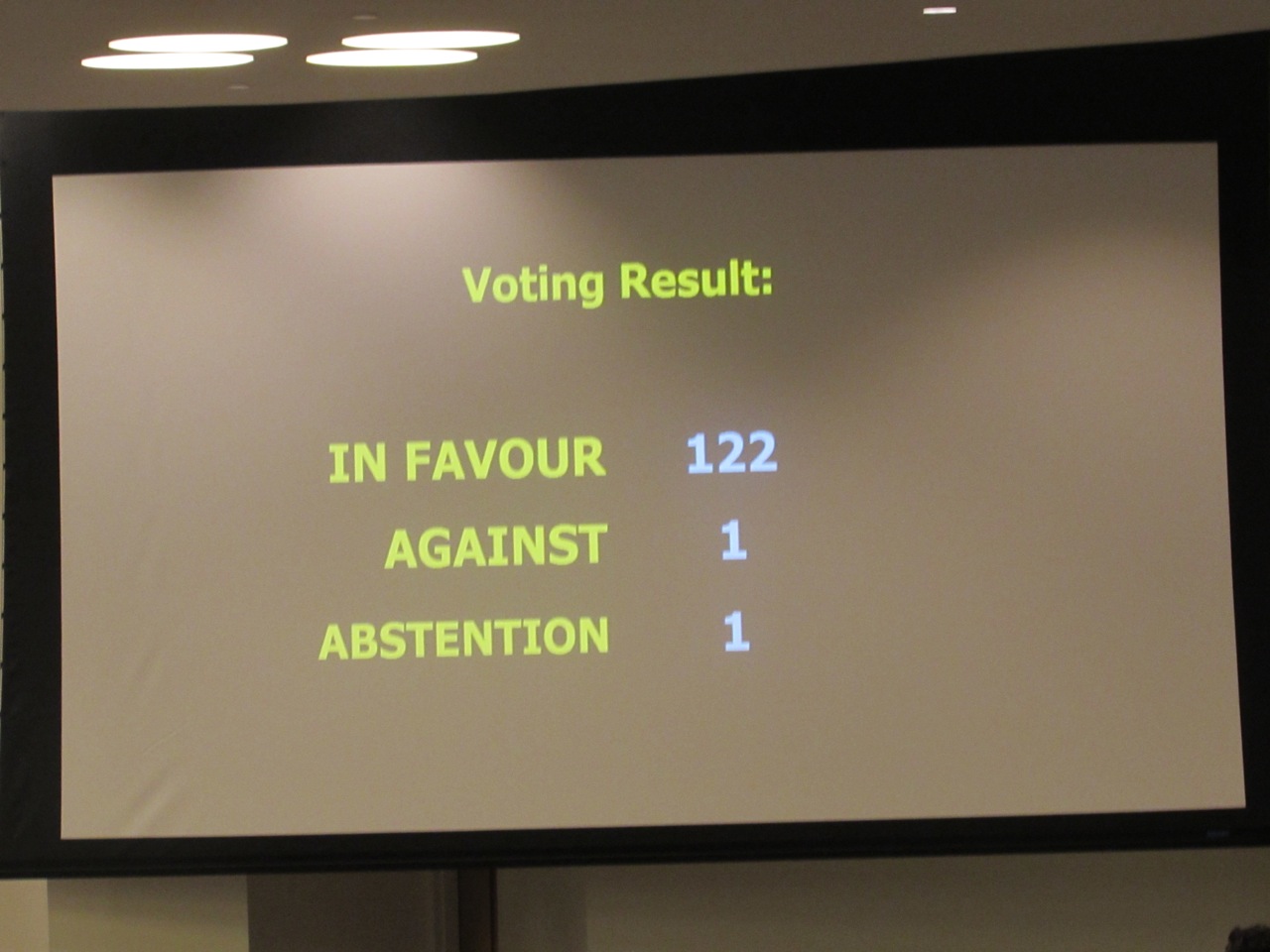Conference president Elayne Whyte, in submtting the final text for the vote, said we were here “to give life to a new treaty that…seeks to bring together the world around the dream of each and every person to see a world free of nuclear weapons.”