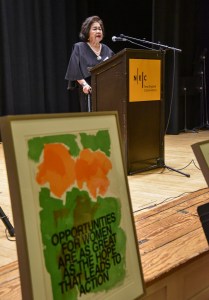 Setsuko Thurlow speaks during a reception in her honor on October 5. Photo: Steve Lipofsky