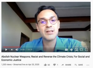 An online international conference sponsored by the Rosa Luxembourg Stiftung NYC on April 25 provided a unique opportunity for the world’s nuclear disarmament campaigns, allied movements and organizations, and diplomats committed to banning and eliminating nuclear weapons to amplify nuclear abolition demands and to show how the nuclear dangers interconnect with the threats posed by climate change, the Covid-19 pandemic, and the injustices of our world.Among the speakers at “Abolish nuclear weapons; resist and reverse the climate crisis; for social and economic justice,” which was co-sponsored by IPPNW, was regional vice president for Latin America Carlos Umaña, who discussed ICAN and the Treaty on the Prohibition of Nuclear Weapons (at the 20:15 mark in the conference video).