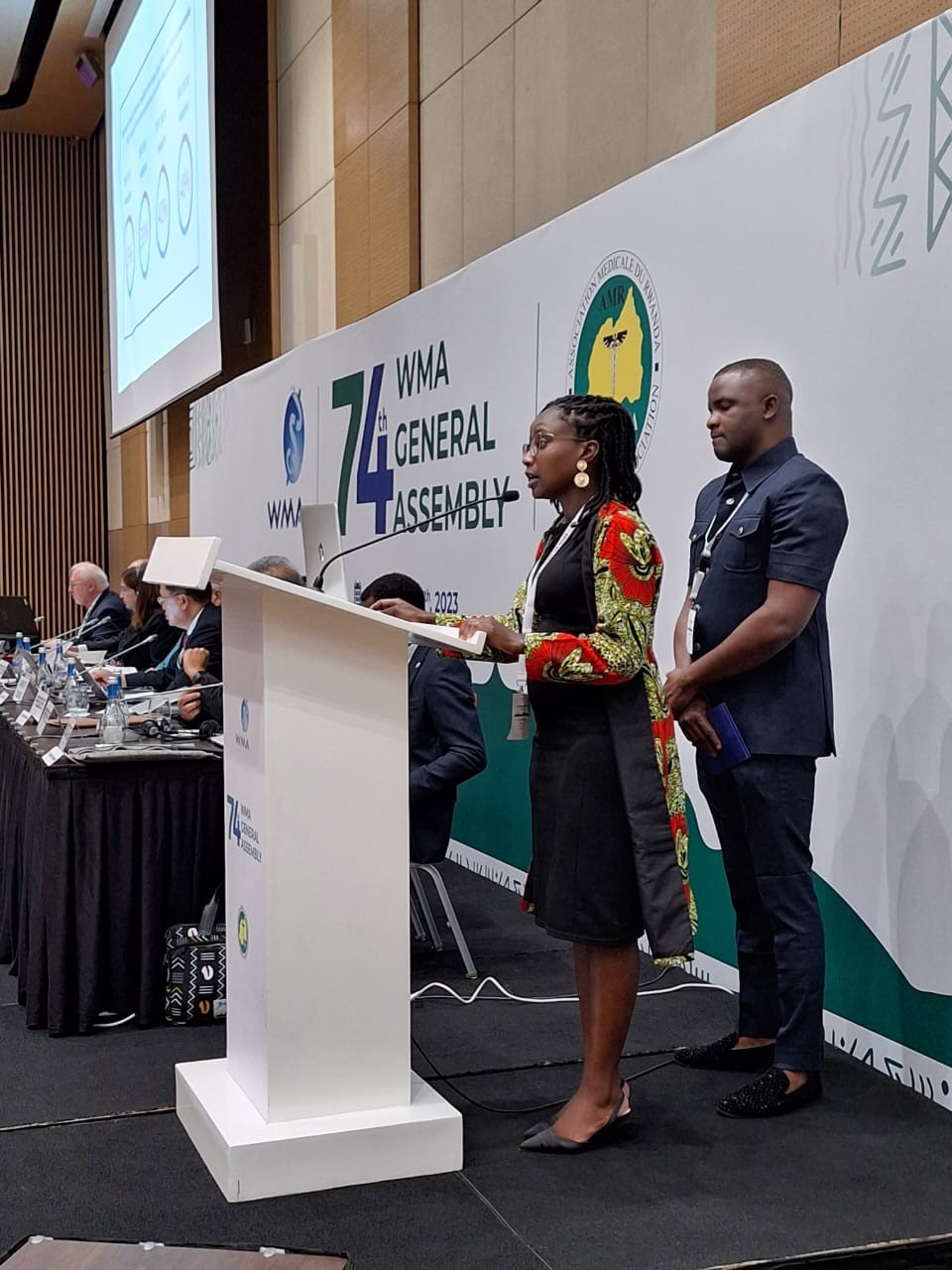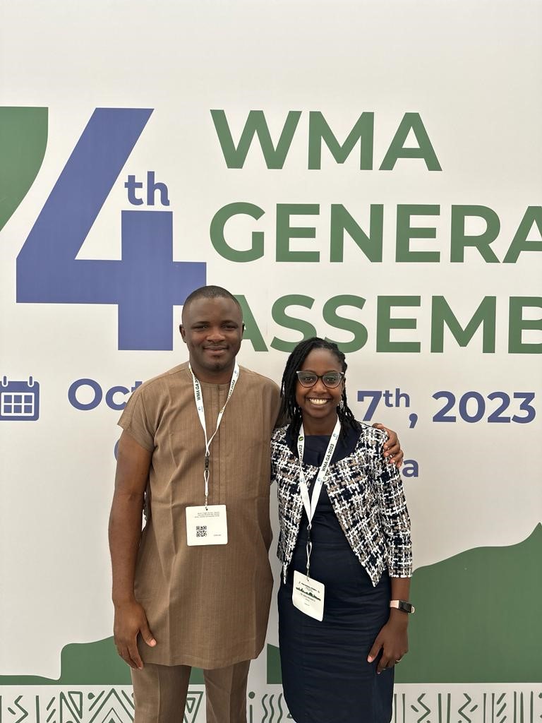 Drs. David Onazi and Sally Ndung’u at the World Medical Association General Assembly 2023