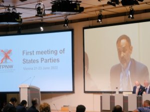 For almost three years, fighting COVID in an emergency department has left me with regular feelings of burnout. That’s why it was such a pleasure for me to join and witness history at a week of anti-nuclear events surrounding the first ever meeting of state parties to the Treaty on the Prohibition of Nuclear Weapons (TPNW), from 18 to 23 June, representing International Physicians for the Prevention of the Nuclear War (IPPNW). I was so generously hosted by Jana Reichhold, Austrian IPPNW medical student in Vienna, and we had such fun despite a hectic schedule of workshops, meetings, seminars, and a bike tour. My first time attending a United Nations conference was unforgettable, and I promise it will not be the last.