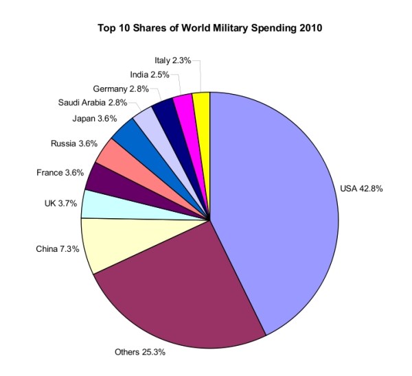 According to a new report released today by the Stockholm International Peace Research Institute (SIPRI), world military expenditures grew to a record $1,600 billion in 2010.