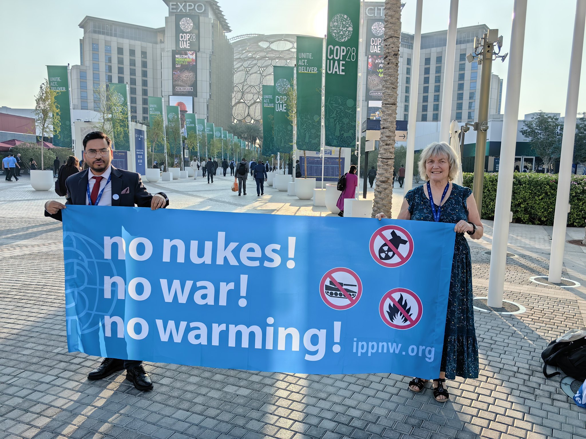 “What are you guys doing here?” As the first IPPNW delegation attending the UN climate summit (COP28), this was a question we heard often. For years, the security sector has described climate change as a “threat multiplier,” retooling the crisis into an argument for increased defence research and spending. The UN climate negotiations have, on the other hand, avoided mentioning the damage inflicted by military activity on people, ecosystems and the climate.