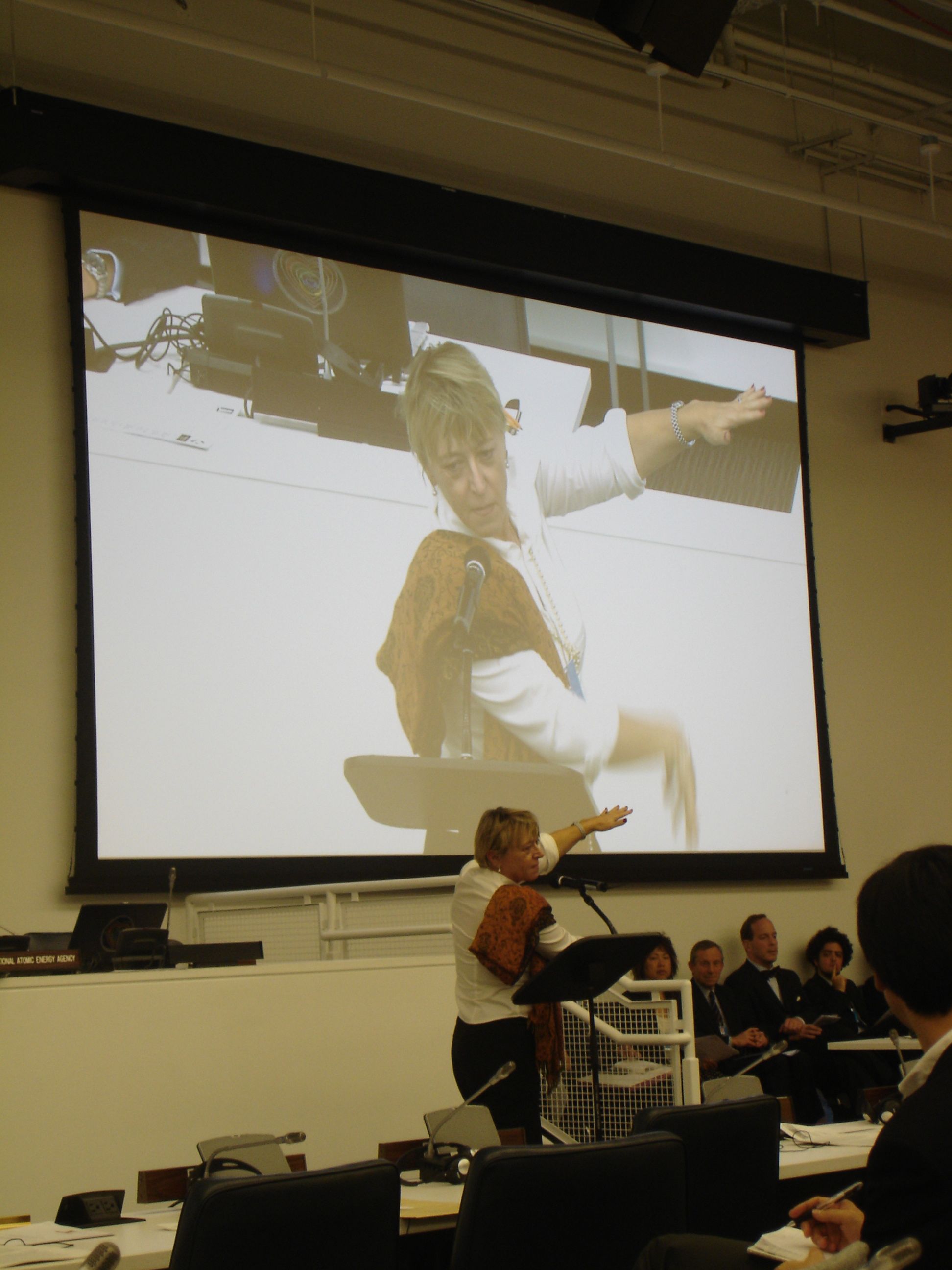 Rebecca Johnson of the Acronym Institute explains that the Nuclear Weapons Convention fulfills the NPT at a special Review Conference session for NGOs on May 7. 2010.
